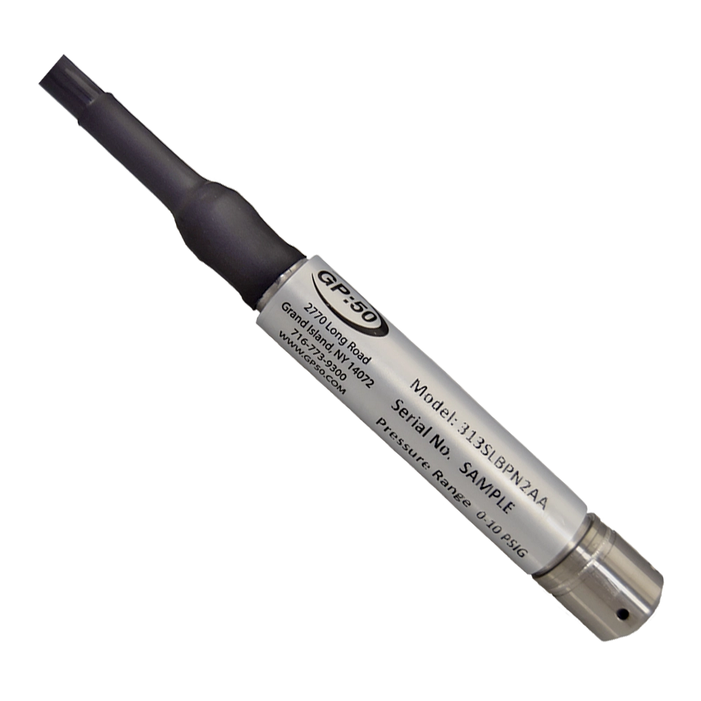 Model 313L Submersible Weir, Well, Pond or Tank Level Transmitter from GP:50 is a line of highly accurate and reliable submersible level transmitters. The corrosion-resistant 316L stainless steel construction, and an integrated hydrophobic breather vent help provide years of maintenance-free service.