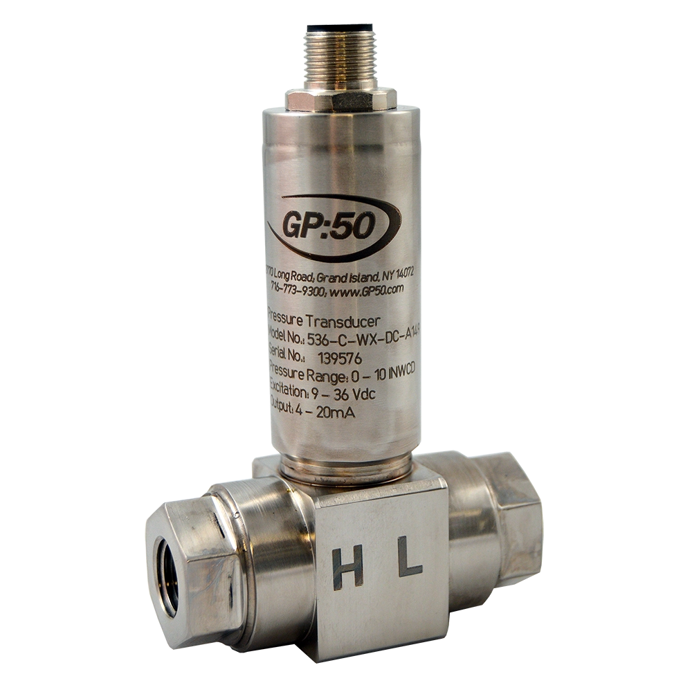Model 536 CAN bus from GP:50 is a compact, high-accuracy, digital output differential pressure transducer. This Model measures differential pressure ranges as low as 0-20” WCD (50 mbar) and line pressures up to 1000 PSID (69 BAR) in a compact size with improved thermal performance to meet the demands of the automotive, medical and laboratory test markets. The CAN open protocol allows for multiple devices on a single bus, reducing installation time and cost.