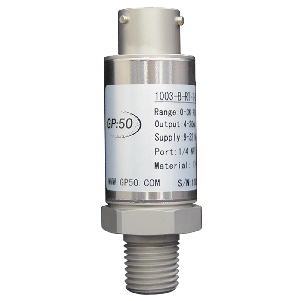 Model 1001/1002/1003 OEM Industrial Grade Pressure Transmitter from GP:50 is a family of lower cost, industrial  grade OEM pressure transducers, featuring corrosion-resistant, all stainless steel wetted parts and housings. Series transducers are ideal for higher volume pressure monitoring applications, particularly where lower costs are required, yet where the need for precision measurement accuracy remains. Units are available with choice of 4-20 mA, 0 to 5 Vdc, 0 to 10 Vdc or mV/V output, as well as various electrical connection and pressure port options. Typical applications for the Model 1001/1002/1003 include off-road vehicle, HVAC/R, hydraulic and pneumatic control systems, pumps and compressors, and industrial engine pressure monitoring.