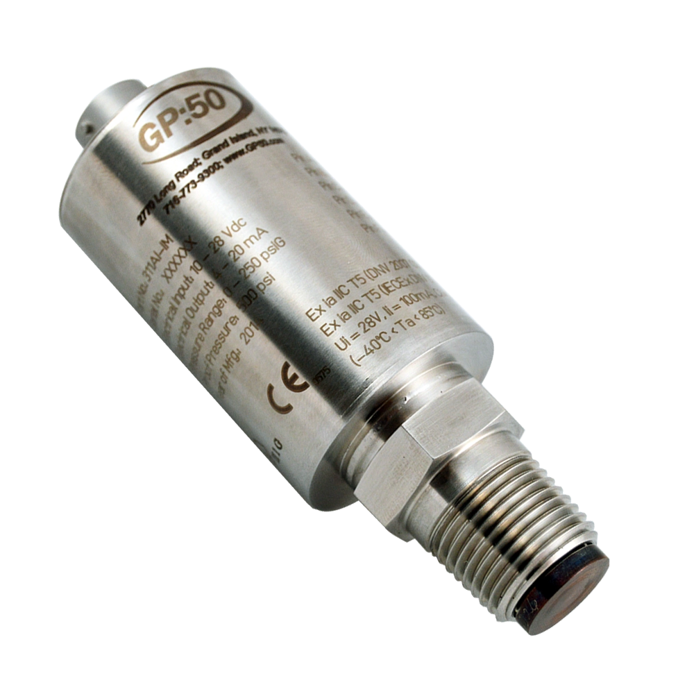 Model 40 Hazardous Locations Pressure Transmitter Series from GP:50 incorporates over 25 years of oil field proven design in a 1” diameter package. The 40 Series provides a rugged solution for hazardous approved areas, especially where space constraints are a concern. Its all-welded stainless steel design will provide years of reliable service in some of the harshest environments.