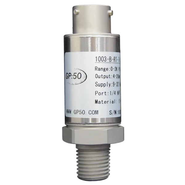 Model 1002/1003-CA Low-Cost OEM Pressure Transducer from GP:50 is a family of lower cost, industrial grade OEM pressure transducers, featuring corrosion-resistant, all stainless steel wetted parts and housings. Series transducers are ideal for higher volume pressure monitoring applications, particularly where lower costs are required, yet where the need for precision measurement accuracy remains. Units are available with choice of 4-20 mA, 0 to 5 Vdc or 0 to 10 Vdc output, as well as various electrical connection and pressure port options. Typical applications for the Model 1002/1003-CA include off-road vehicle, HVAC/R, hydraulic and pneumatic control systems, pumps and compressors, and industrial engine pressure monitoring.