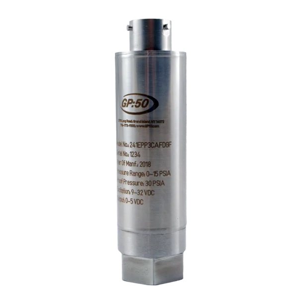 Model 241/341 High Accuracy Pressure Transducer from GP:50 is our most accurate pressure transducer. Designed specifically for aerospace and automotive test stand applications, it is 5x tighter through temperature than standard industrial transmitters with a 0.20% FSO / 100 °F thermal stability. More than 25 years of field expertise went into the design of our pressure transducer for exceptional reliability. The compact, corrosion-resistant, all-welded stainless steel design of the Model 241/341 offers ease of installation within space constrained environments. Static accuracy is available to ±0.05% FSO, with a total thermal error of 0.25% FSO over the compensated temperature range.