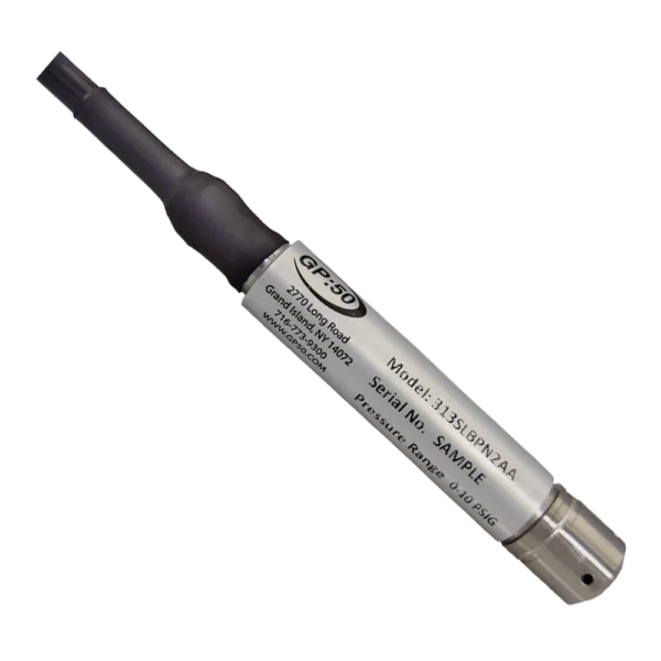 Model 313SL Slim Submersible Level Transmitter has all the same features as discontinued model 313S but with a slim 0.622” (15.8 mm) diameter and compact 3.4” housing for those applications that have limited installation space. All GP:50 submersible level transmitters are built with a rugged leak-proof stainless steel construction, lightning surge protection and an integrated hydrophobic filter to provide accurate level measurement with years of corrosion free service for all types of level applications.