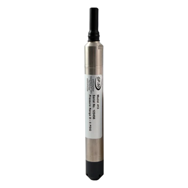 Model 413 Field Rangeable Level Transmitter from GP:50 is a line of field rangeable, highly accurate and reliable submersible level transmitters. The field adjustment option provides for zero and span adjustments as well as rangeability, eliminates the need to rescale your panel meter when replacing transmitters, and allows for fewer units to stock due to rangeability options. The corrosion-resistant 316L stainless steel construction and integrated hydrophobic breather vent help to provide years of maintenance free service life.