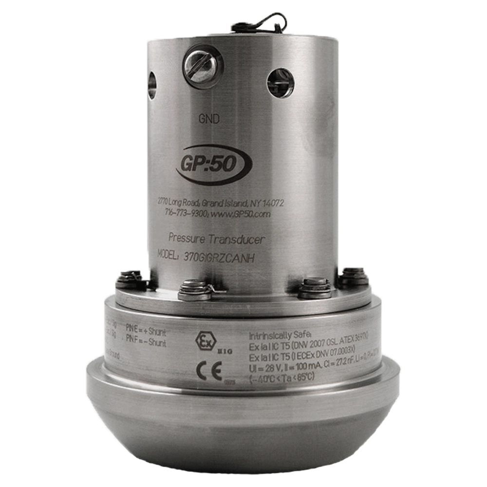 Model 7780 High Temperature Pressure Transducer Series from GP:50 offers consistent measurement accuracy in temperatures up to +350 °F (+177 °C). The Series features a lightweight, all stainless steel construction with choice of either 4-20 mA, 0 to 5 Vdc, or 0 to 10 Vdc output; or optional digital protocols. Onboard isolated transducer electronics are remotely mounted via stainless steel armor jacketed flex tubing. The high-reliability of the Model 7780 Series is field-proven over 25 years and hundreds of applications, including higher shock and vibration environments.